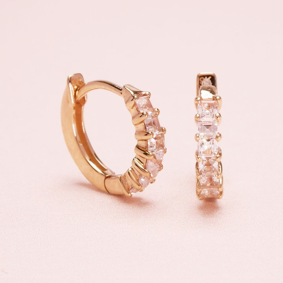 ต่างหูห่วงทองแท้9K Rose Gold Square White Sapphire
